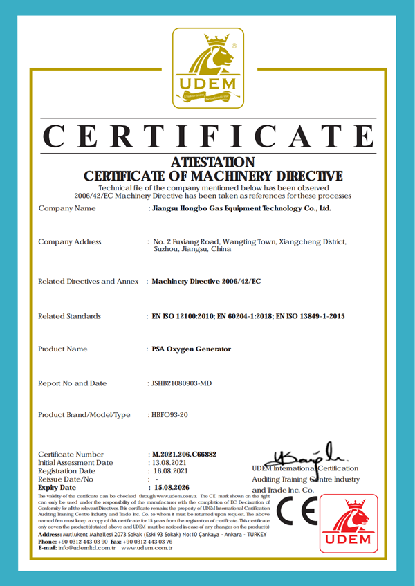 制氧機(jī)CE證書